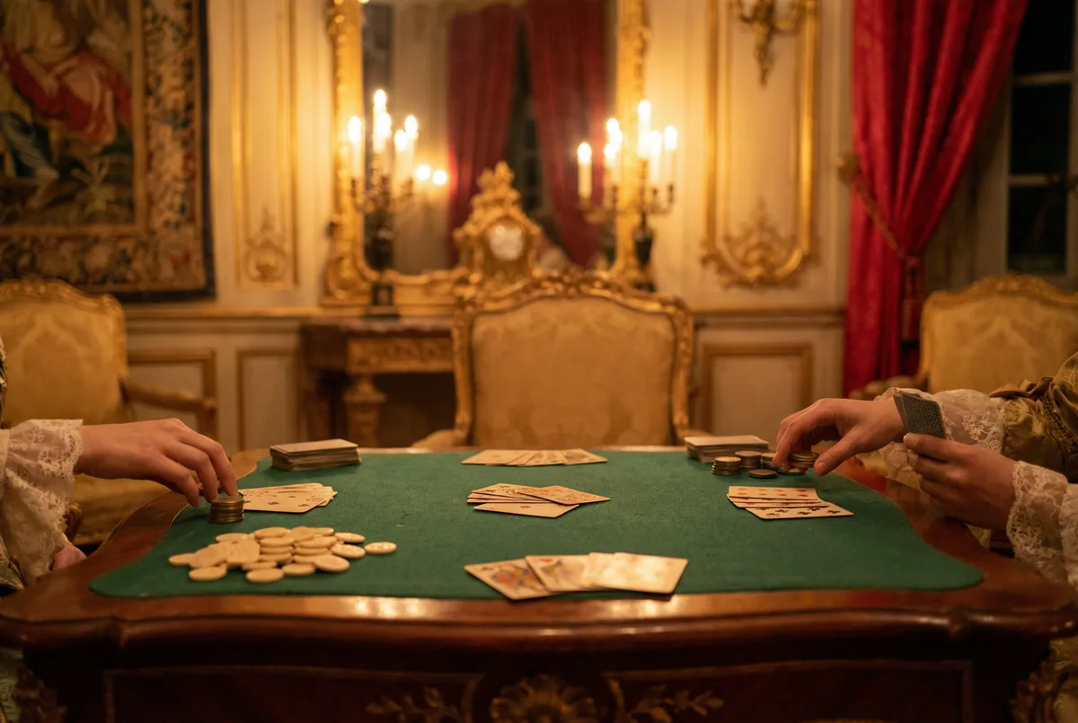 Vingt-et-Un in French salons: A card game called Vingt-et-Un appears in French court records. Players bet against a banker, aiming to reach 21 without exceeding it, the core mechanic unchanged for 300 years.